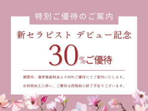 【新セラピストみずき デビューご優待のご案内】